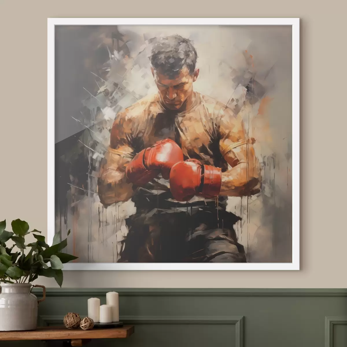 Poster Boxer en peinture à l’huile de gants rouges f39180