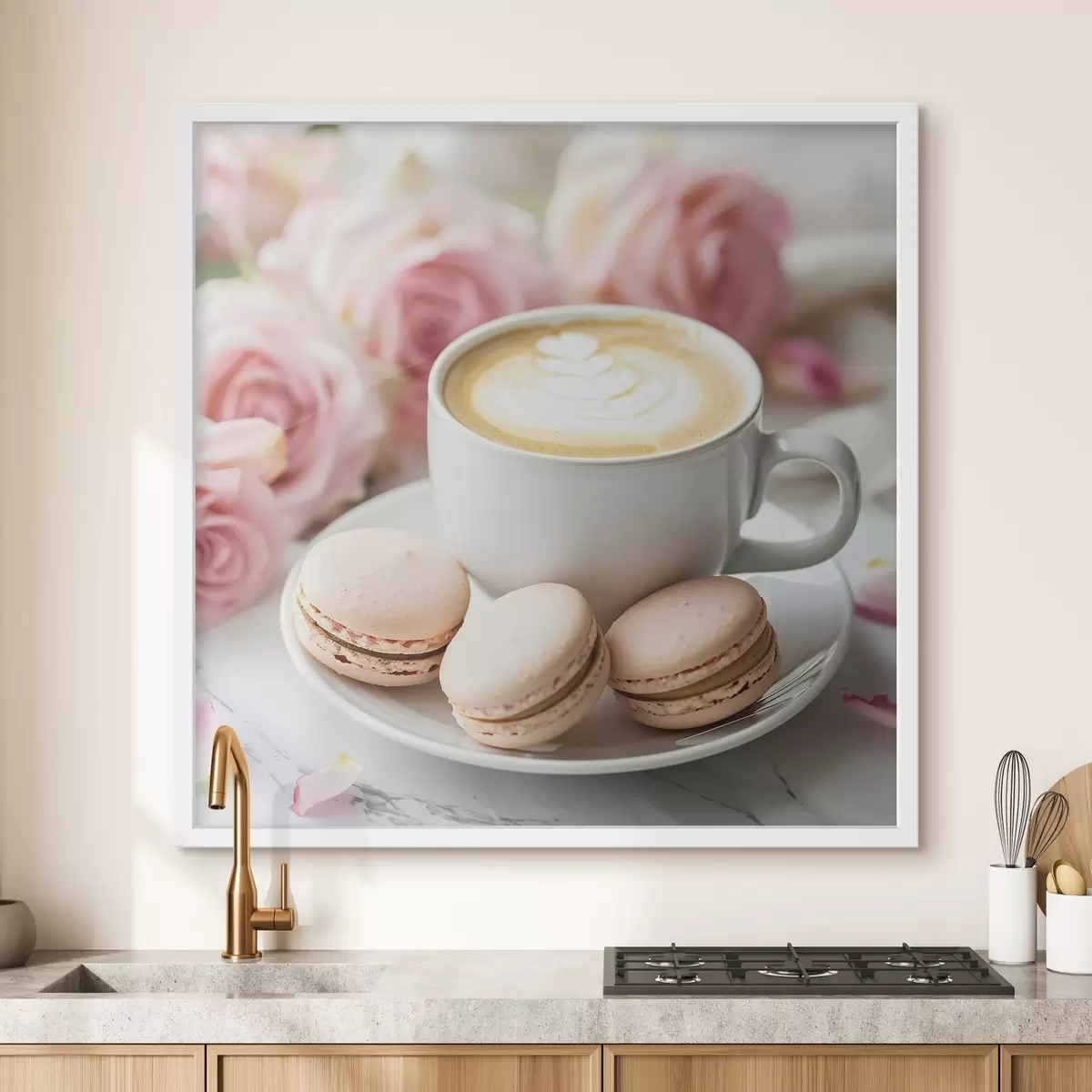 Poster Une tasse de café sur un fond floral délicat Nr f39232