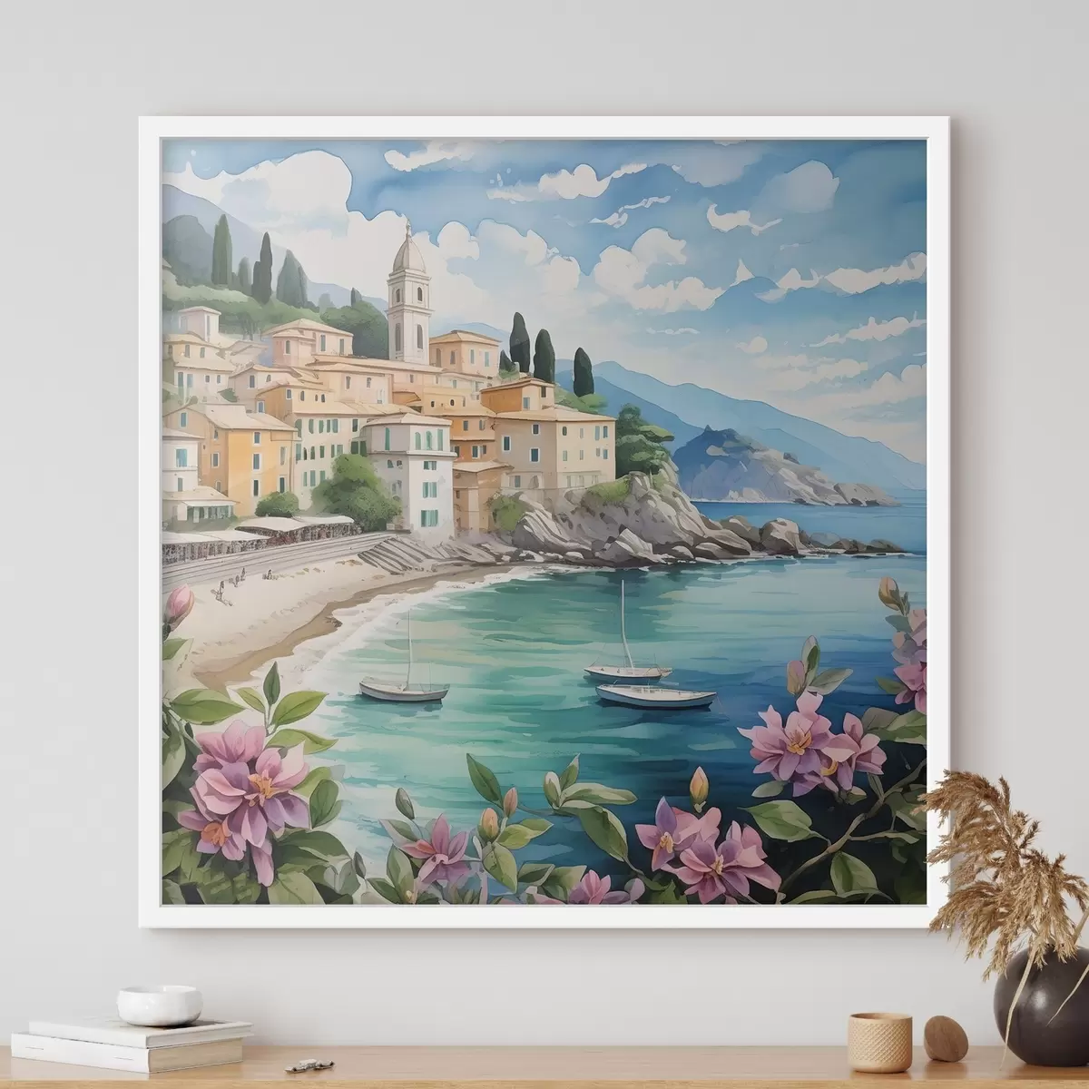 L’affiche encadrée est composée d’un cadre, d’un plexiglas, d’une image imprimée et d’un support en aggloméré. Elle est prête à être accrochée au mur grâce aux fixations situées à l’arrière.