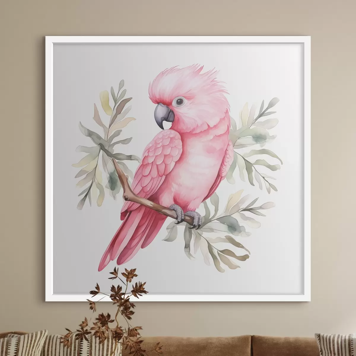 Poster Un perroquet cacatoès rose assis sur une branche d'aquarelle Nr f39334