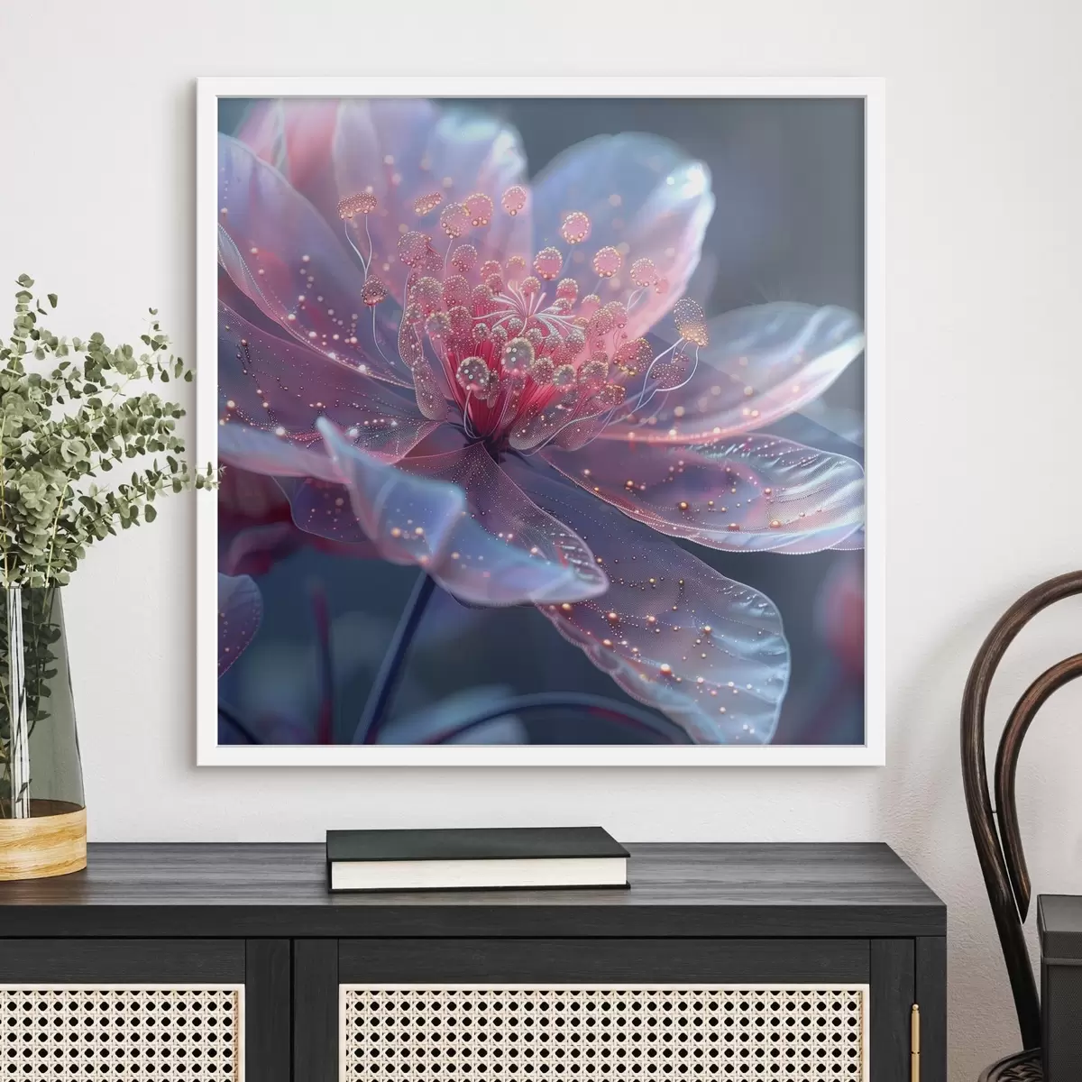 Poster Mignonne grande fleur fractale bleue et rose f39740