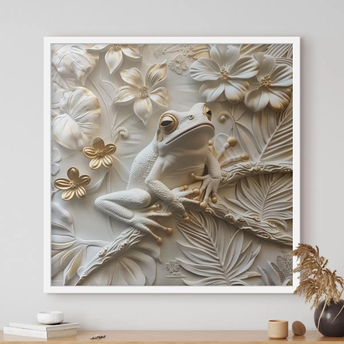 Poster Sculpture avec une rainette et des accents floraux Nr f39751
