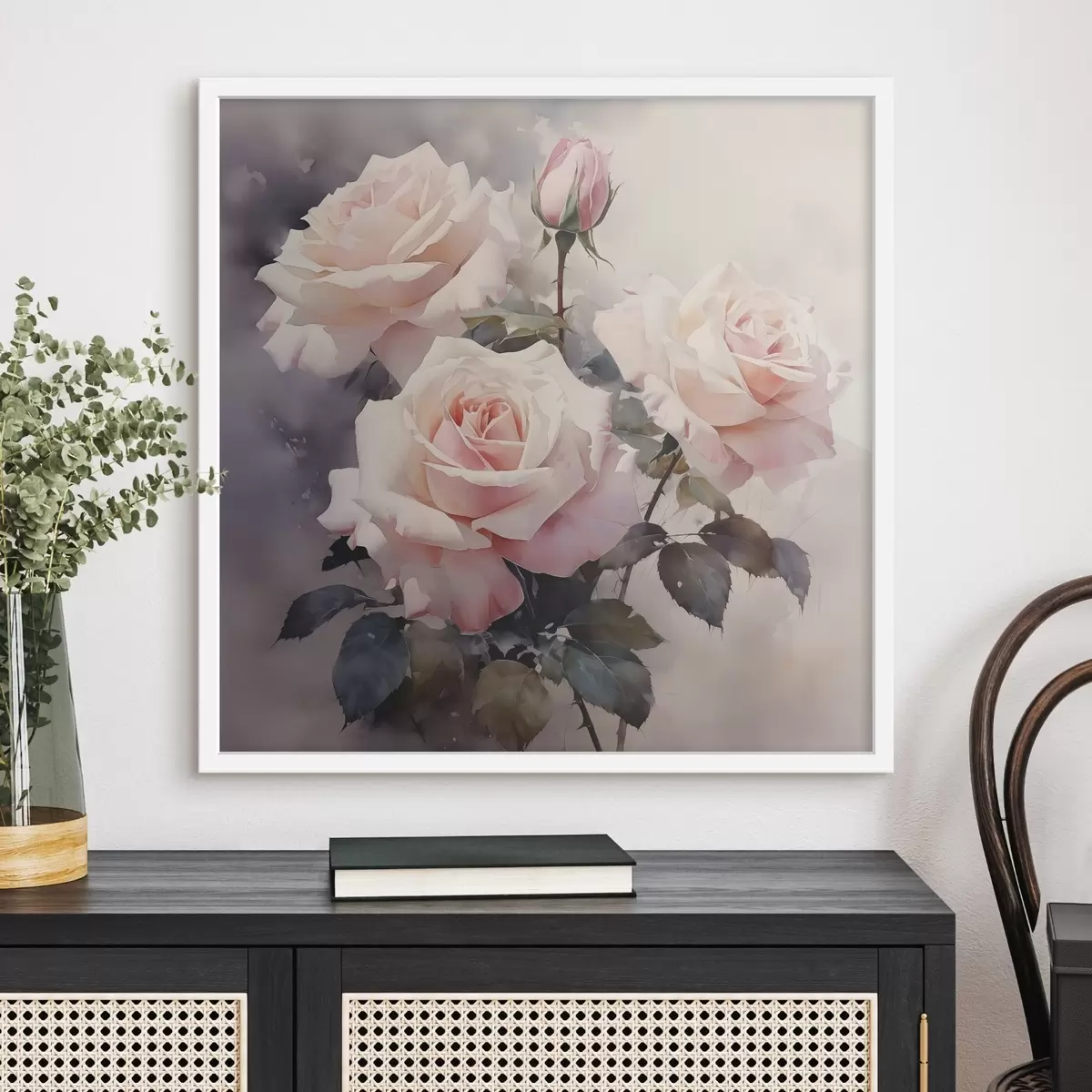 Poster Roses blanches et roses sur un fond aquarelle foncé Nr f39927