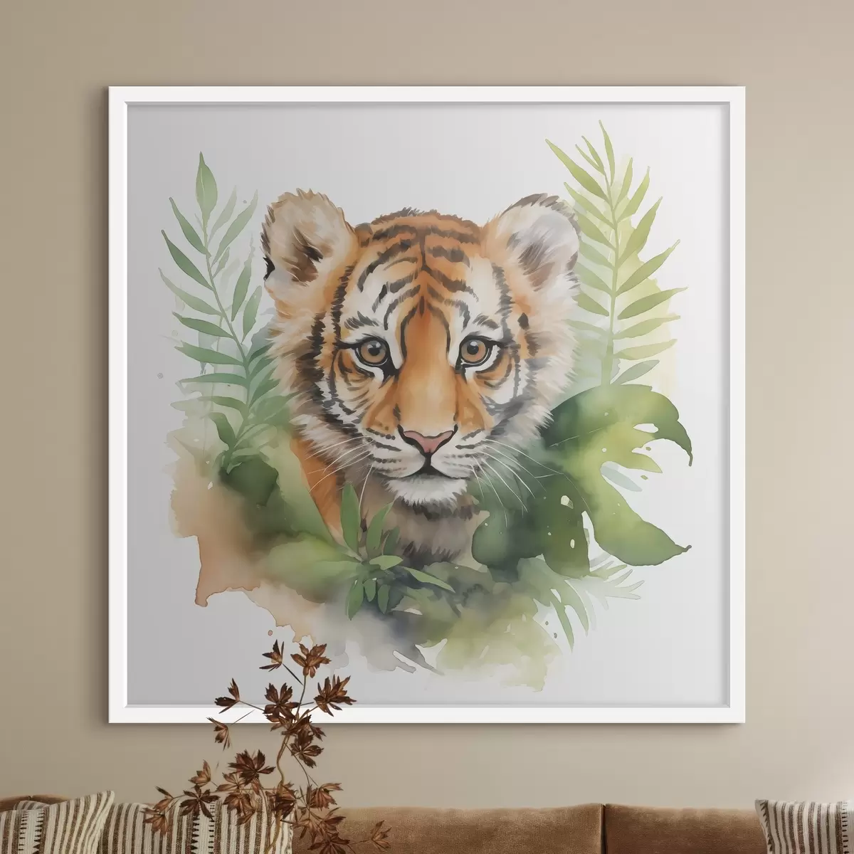 Poster Portrait de tigre dans des feuilles tropicales aquarelle Nr f40090