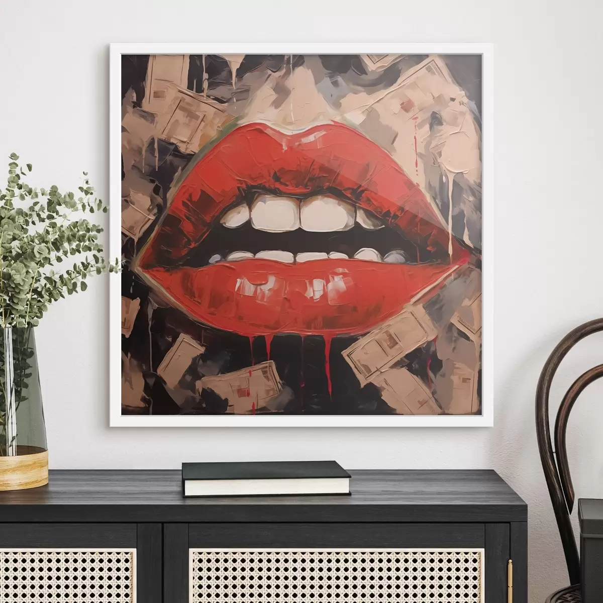 Poster Peinture abstraite lèvres rouges dents blanches f40319