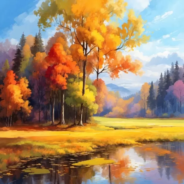 Poster Lac et forêt d'automne en style acrylique Nr f41766