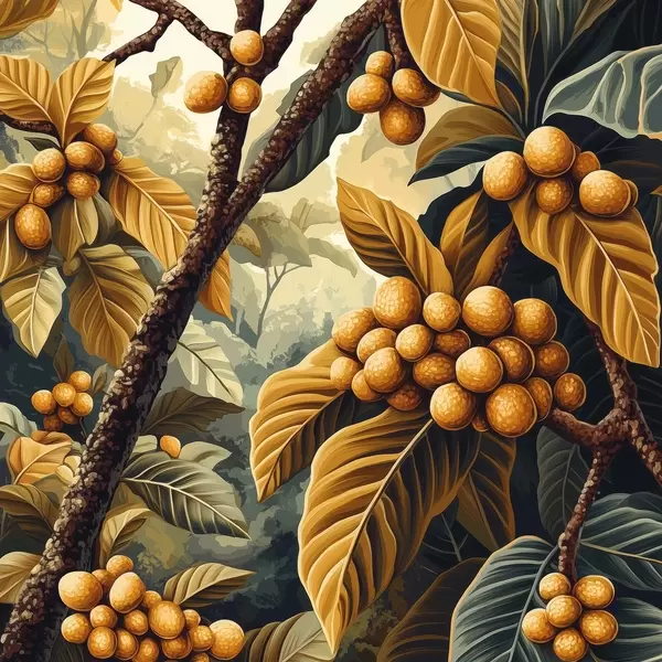 Poster Un caféier avec des fruits et des feuilles dans les tons jaunes Nr f41981