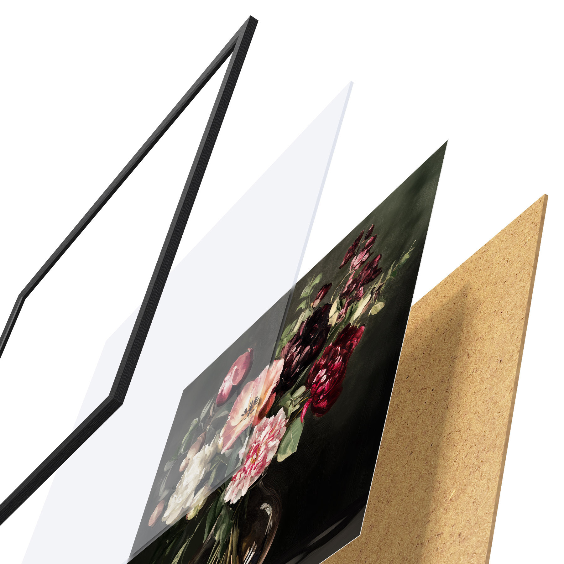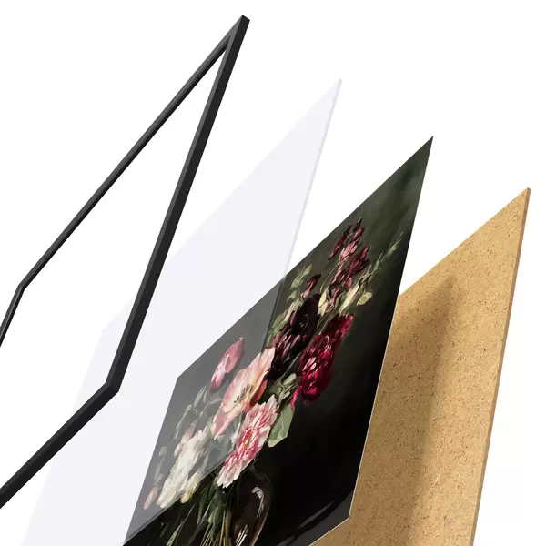 L’affiche encadrée est composée d’un cadre, d’un plexiglas, d’une image imprimée et d’un support en aggloméré. Elle est prête à être accrochée au mur grâce aux fixations situées à l’arrière.