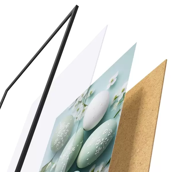 L’affiche encadrée est composée d’un cadre, d’un plexiglas, d’une image imprimée et d’un support en aggloméré. Elle est prête à être accrochée au mur grâce aux fixations situées à l’arrière.