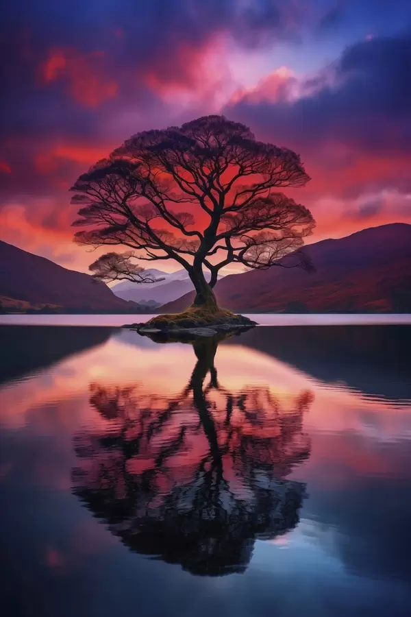 Poster Grand arbre au coucher du soleil Nr f45504