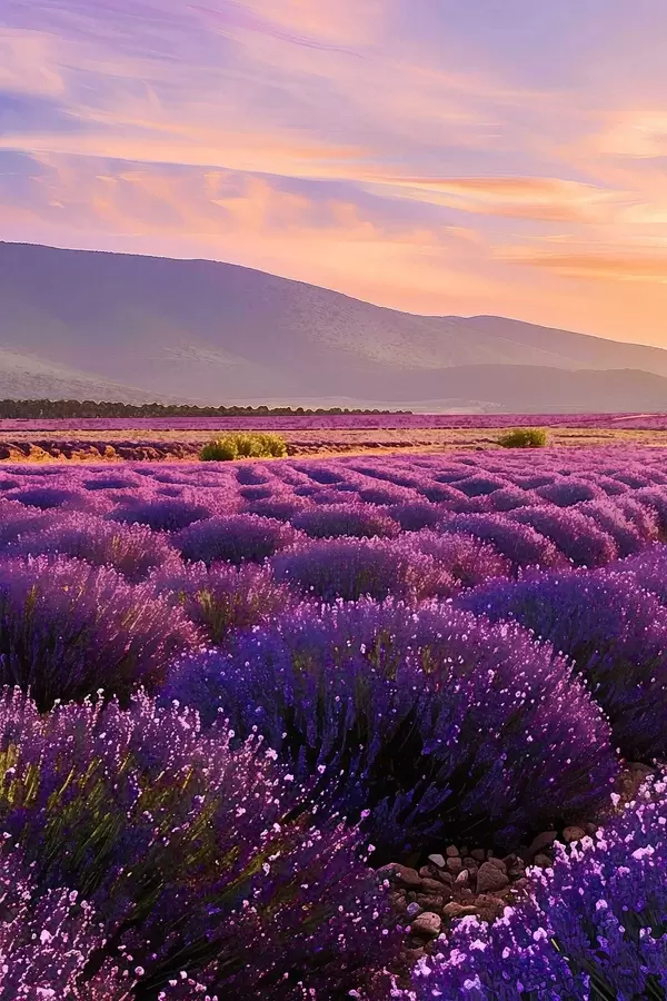 Poster Champs de lavande avec les montagnes en arrière-plan Nr f45662