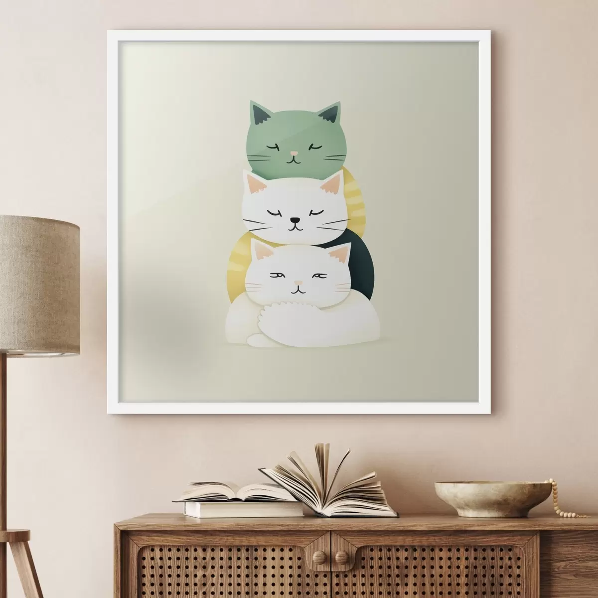 L’affiche encadrée est composée d’un cadre, d’un plexiglas, d’une image imprimée et d’un support en aggloméré. Elle est prête à être accrochée au mur grâce aux fixations situées à l’arrière.