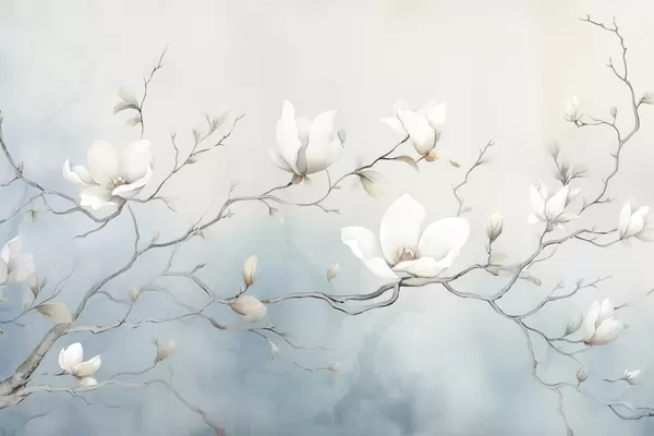 Poster Branches de magnolia avec des fleurs blanches sur un fond délicat Nr f45806