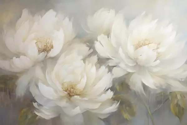 Poster Trois pivoines blanches luxuriantes sur un fond délicat f45808