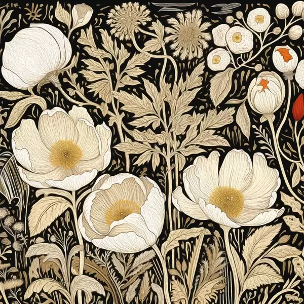 Poster Fleurs et herbes crème sur fond noir Nr f45816