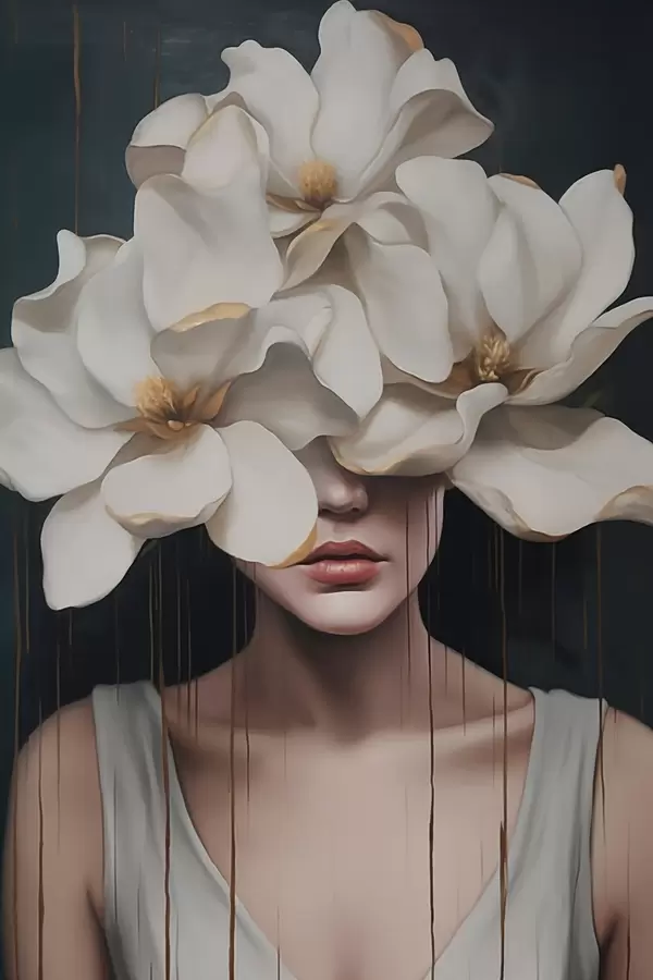 Poster Femme avec des fleurs blanches sur la tête Nr f45843