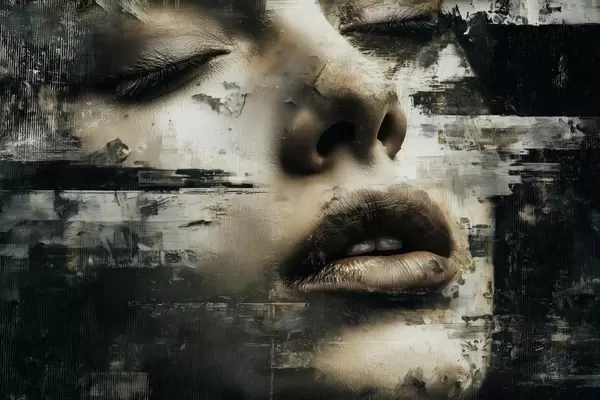 Poster Portrait féminin abstrait avec effet glitch et textures Nr f45873