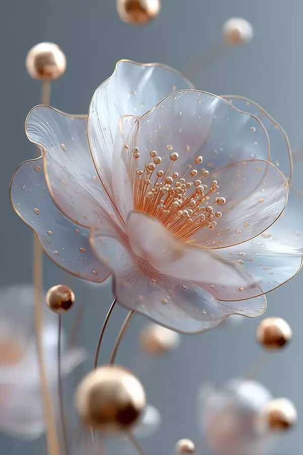 Poster Fleur translucide avec des étamines cuivrées sur fond bleu Nr f45880