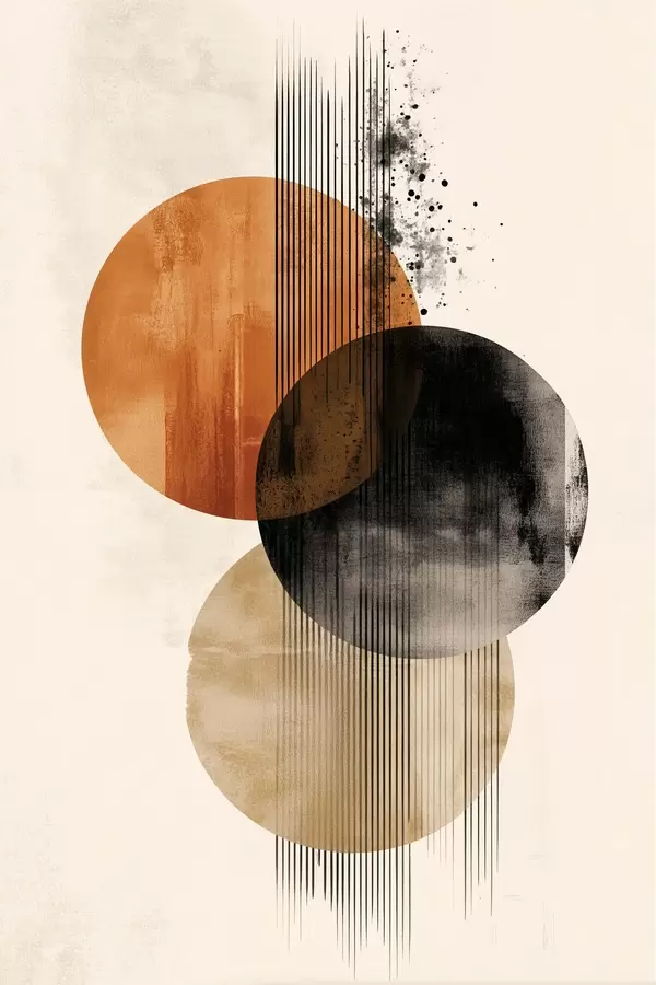 Poster Trois cercles texturés avec des lignes dans une palette de couleurs terre cuite et noir Nr f45885