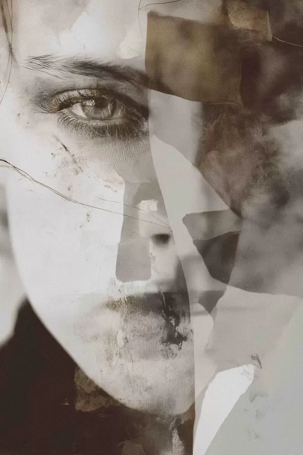 Poster Portrait abstrait en sépia, textures et taches f45897