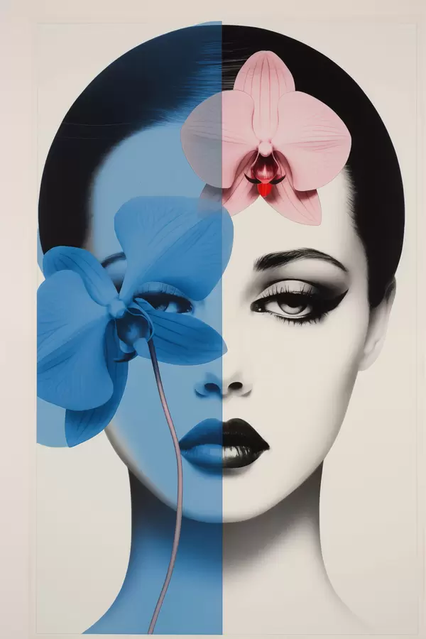 Poster Portrait abstrait d'une femme avec des orchidées f45924