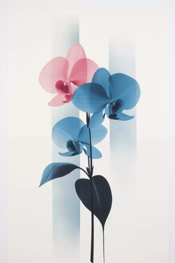 Poster Orchidées avec feuilles sur fond blanc rayé verticalement Nr f45925