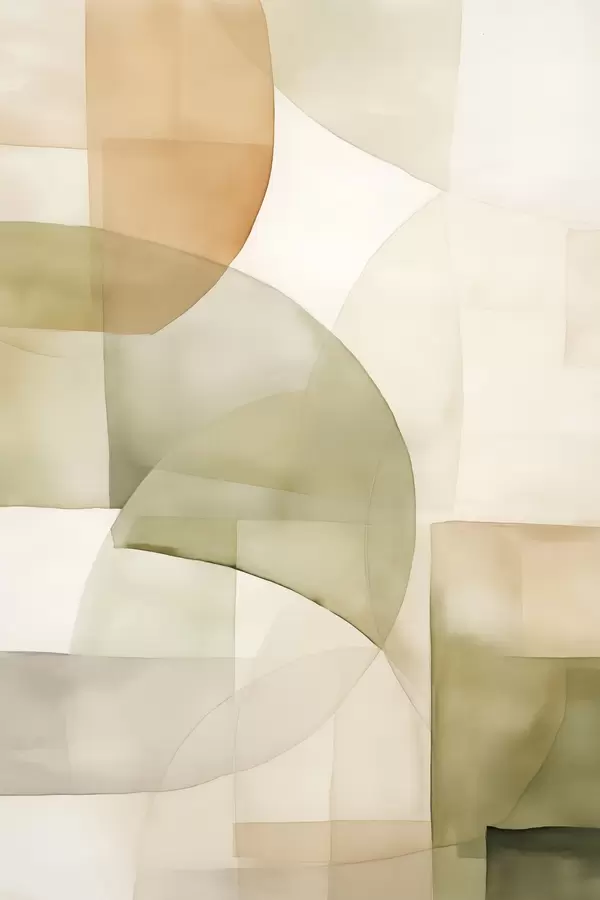 Poster Formes géométriques abstraites texturées à l'aquarelle dans des tons de vert, marron et beige Nr f45929