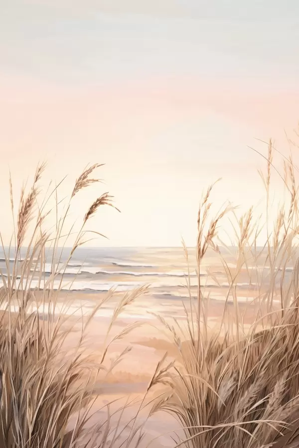 Poster Herbe de la pampa avec une palette de couleurs orange pastel, un ciel rose pâle, un paysage paisible Nr f45935