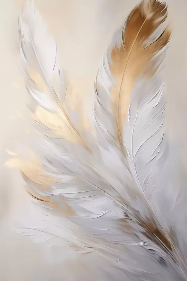 Poster Plumes rehaussées de touches orange, éclairage tamisé, composition minimaliste texturée, art moderne Nr f45944
