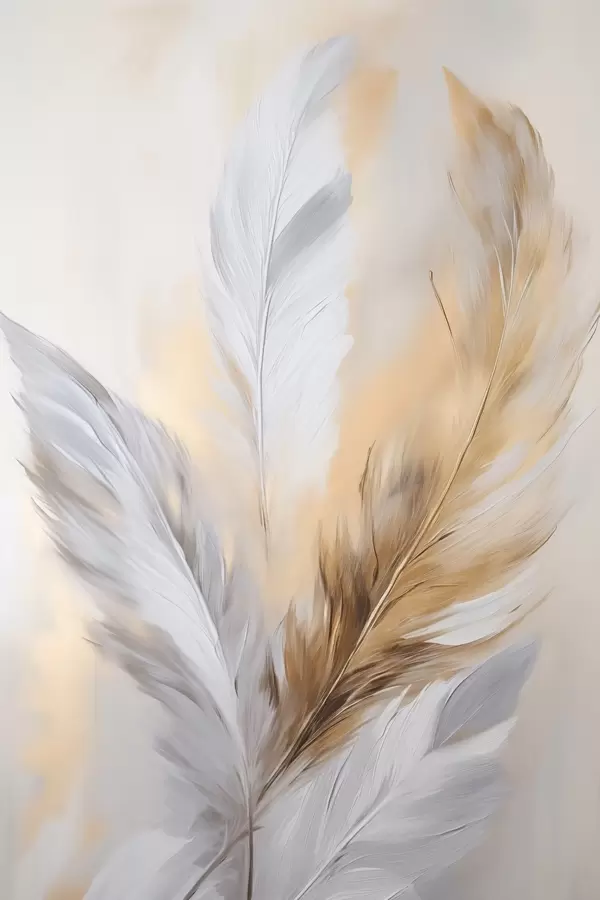 Poster Plumes rehaussées de touches orange, composition minimaliste texturée, art moderne Nr f45945