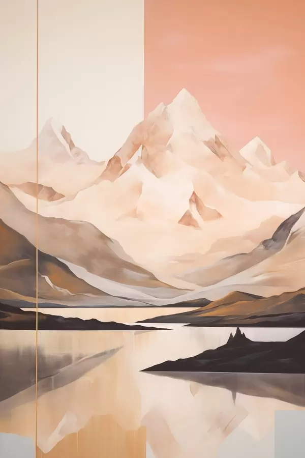 Poster Paysage abstrait avec des montagnes et un lac, couleurs pastel, style minimaliste Nr f45949