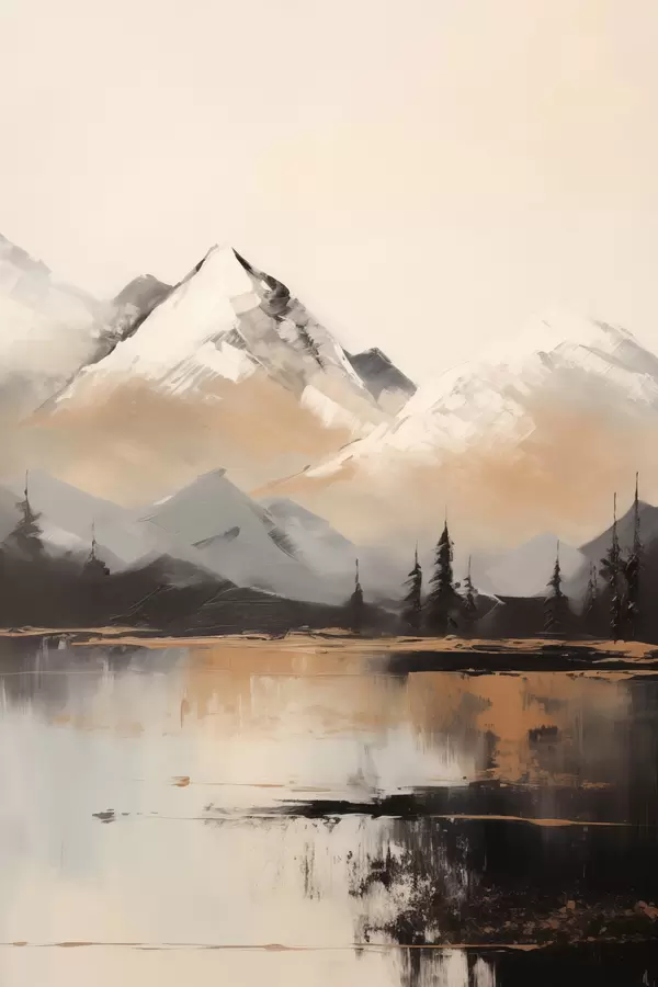 Poster Montagnes enneigées avec quelques arbres devant un lac f45951