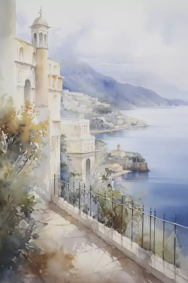 Poster Baie près de la ville imitation aquarelle Nr f45979