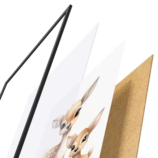 L’affiche encadrée est composée d’un cadre, d’un plexiglas, d’une image imprimée et d’un support en aggloméré. Elle est prête à être accrochée au mur grâce aux fixations situées à l’arrière.