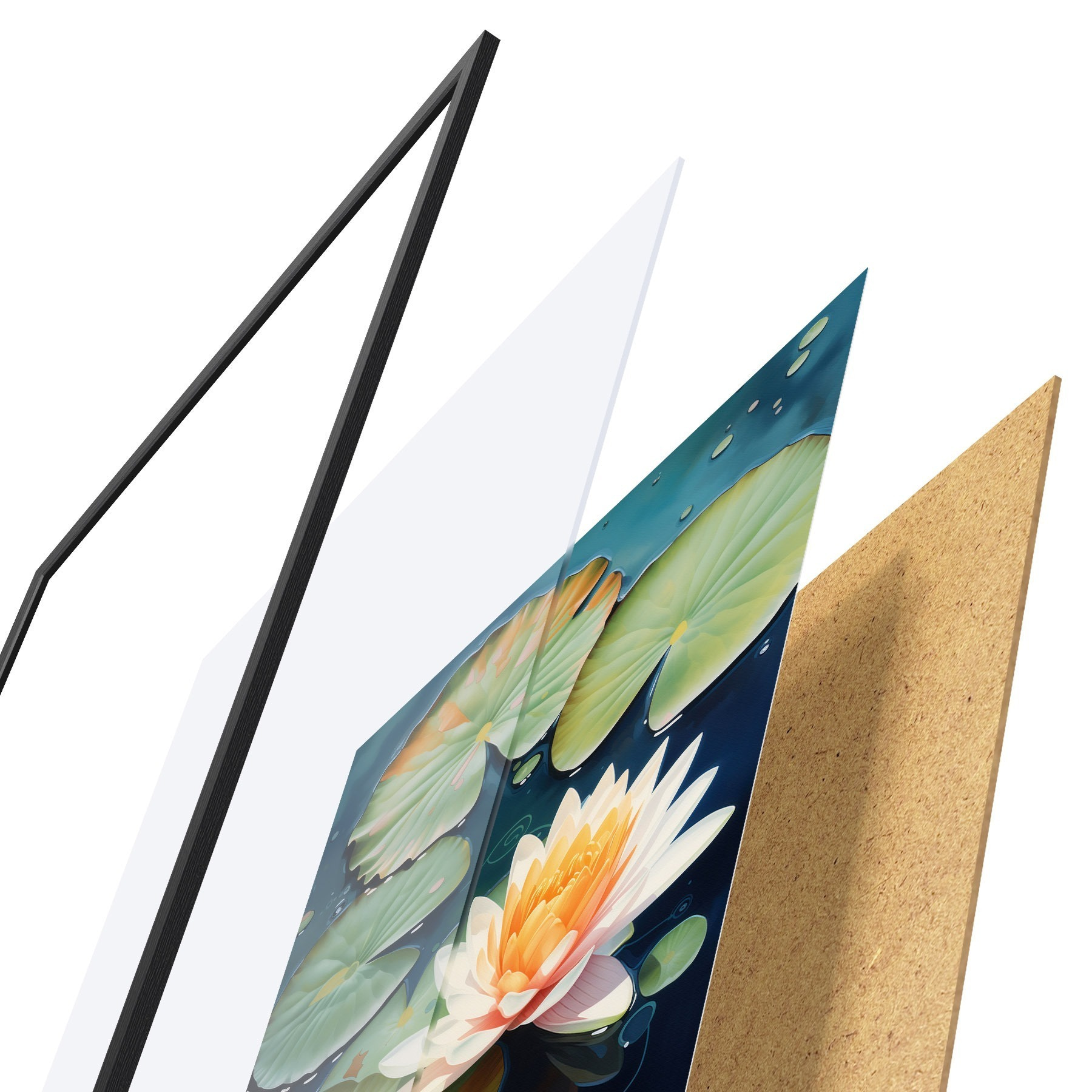 L’affiche encadrée est composée d’un cadre, d’un plexiglas, d’une image imprimée et d’un support en aggloméré. Elle est prête à être accrochée au mur grâce aux fixations situées à l’arrière.