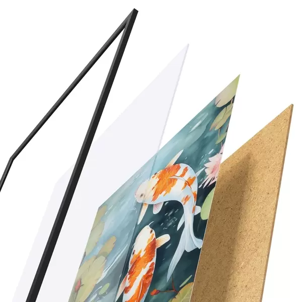 L’affiche encadrée est composée d’un cadre, d’un plexiglas, d’une image imprimée et d’un support en aggloméré. Elle est prête à être accrochée au mur grâce aux fixations situées à l’arrière.