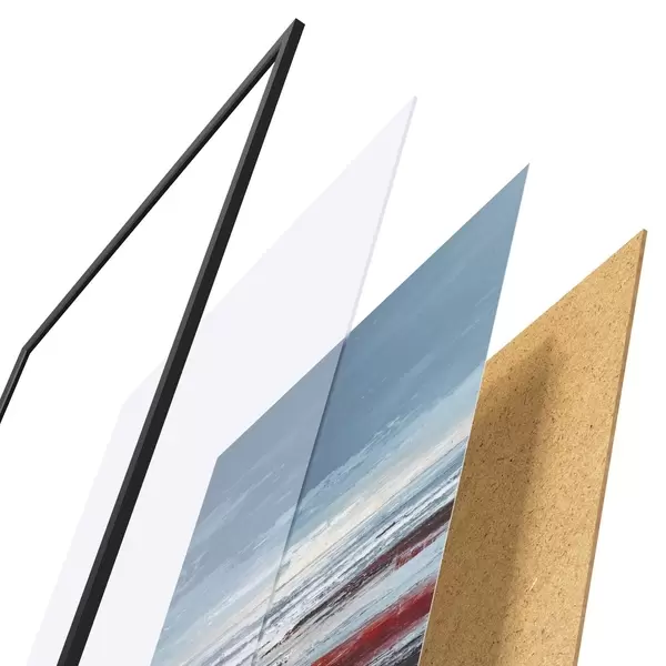 L’affiche encadrée est composée d’un cadre, d’un plexiglas, d’une image imprimée et d’un support en aggloméré. Elle est prête à être accrochée au mur grâce aux fixations situées à l’arrière.