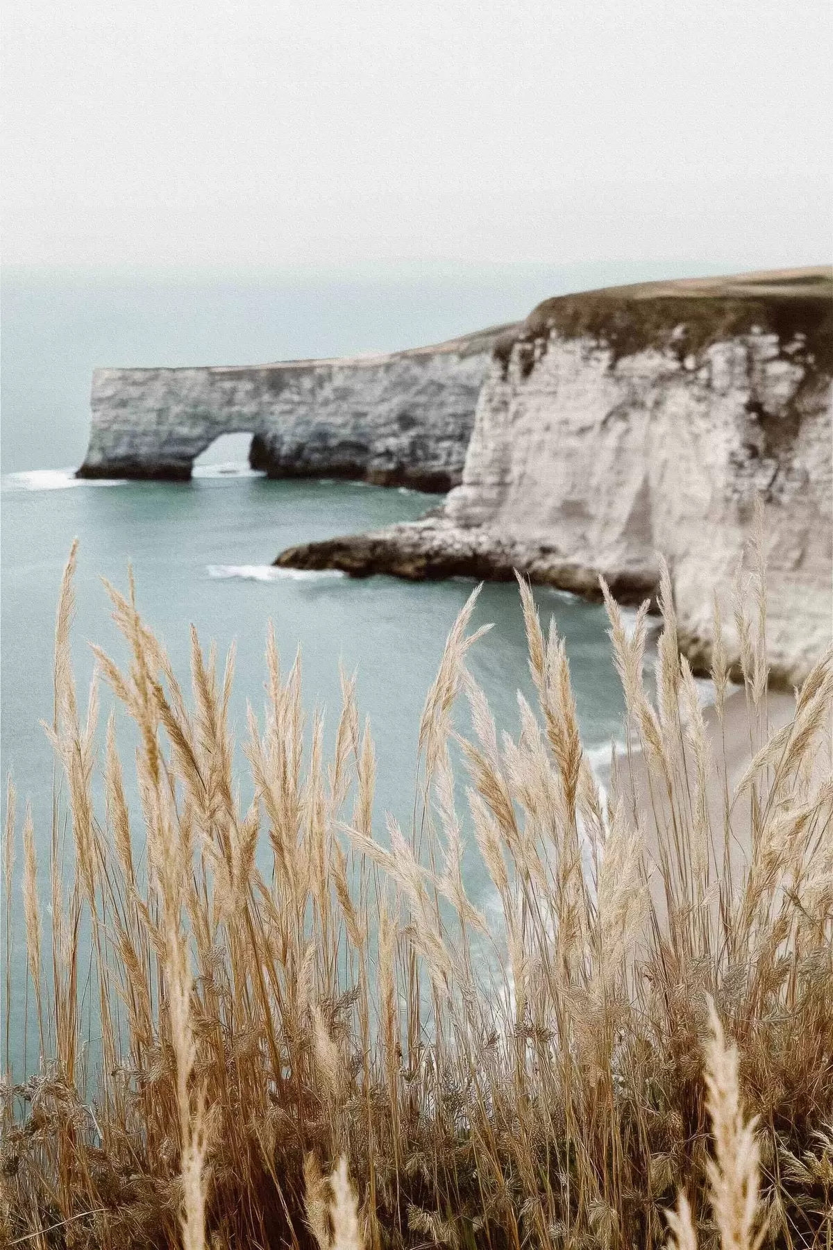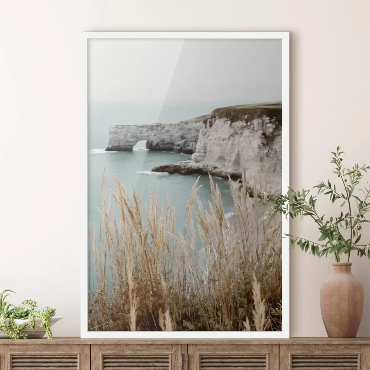Poster Falaises côtières avec des roseaux au premier plan f46141