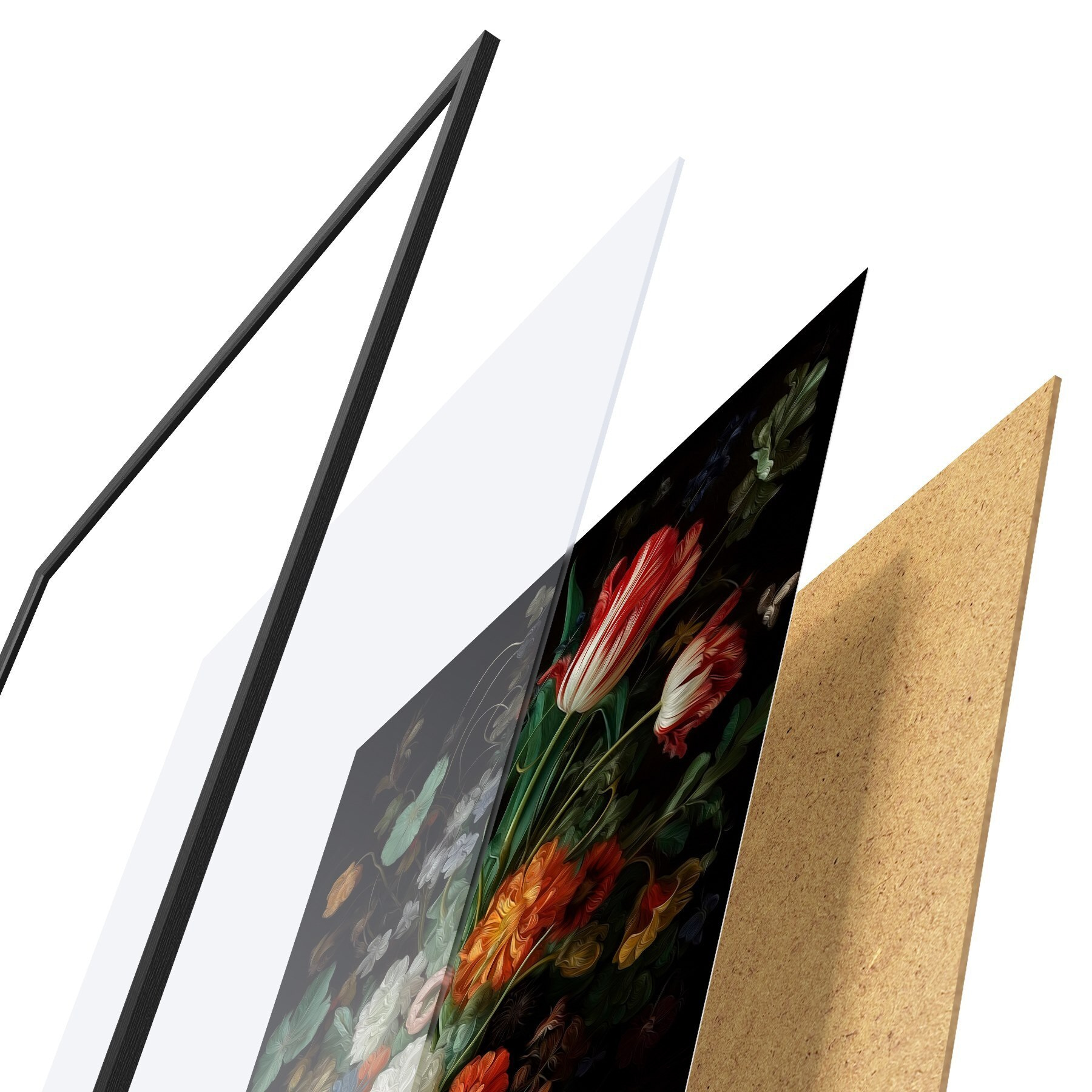 L’affiche encadrée est composée d’un cadre, d’un plexiglas, d’une image imprimée et d’un support en aggloméré. Elle est prête à être accrochée au mur grâce aux fixations situées à l’arrière.