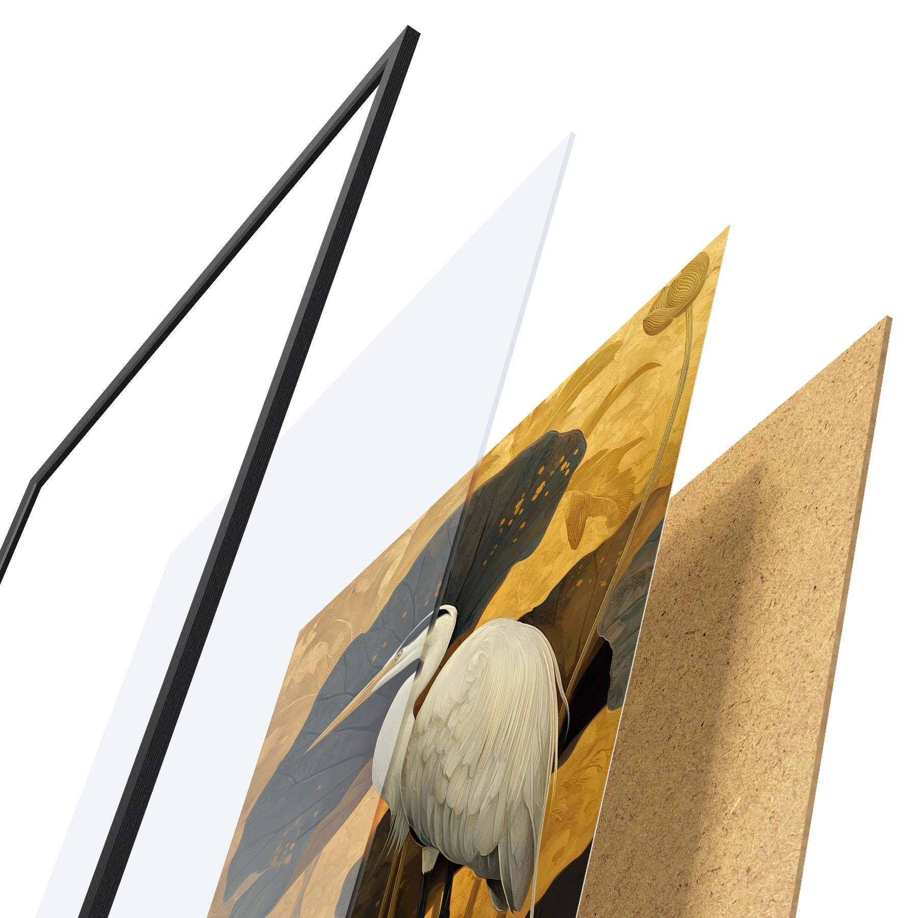 Poster Héron parmi les lotus sur un fond chaud f46148