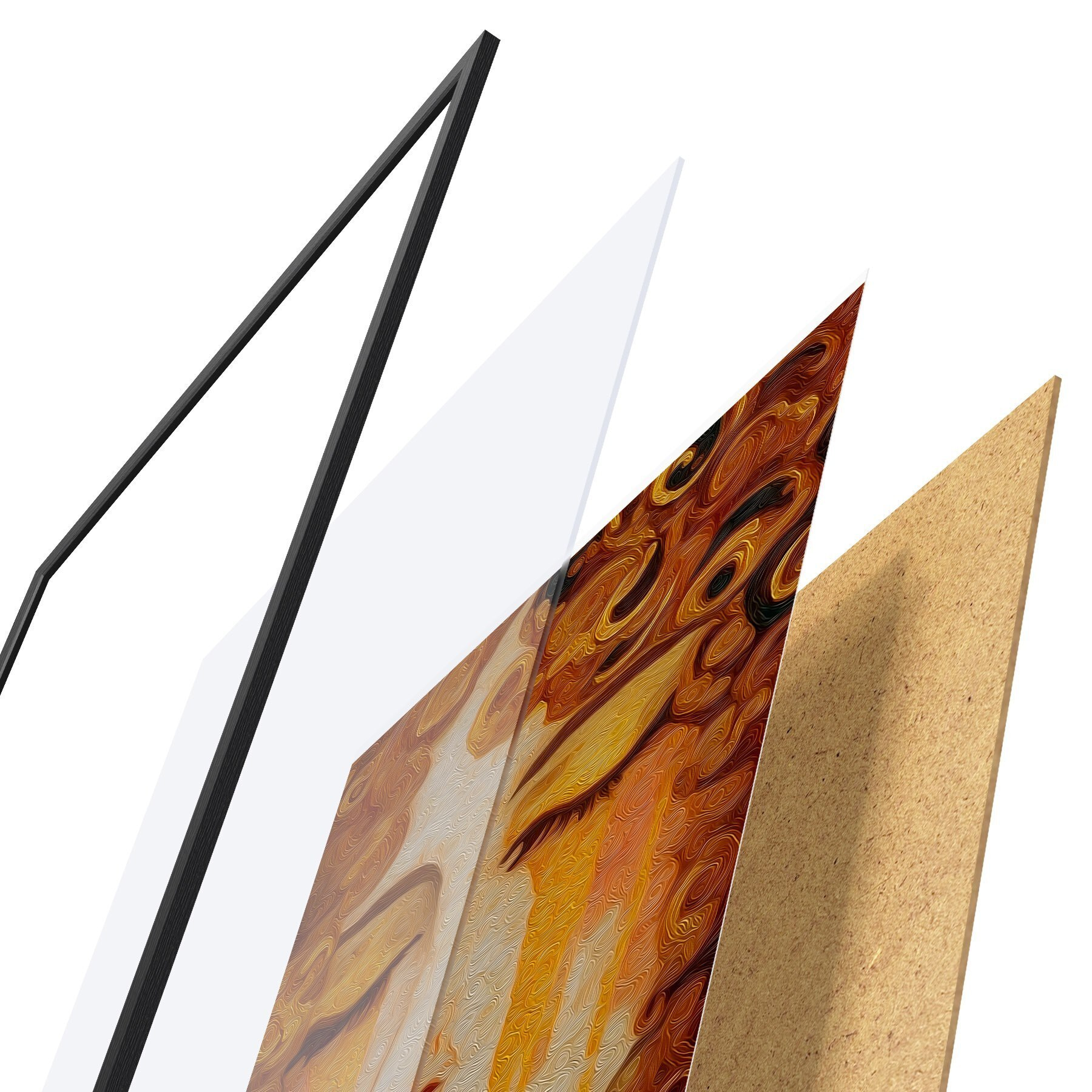 L’affiche encadrée est composée d’un cadre, d’un plexiglas, d’une image imprimée et d’un support en aggloméré. Elle est prête à être accrochée au mur grâce aux fixations situées à l’arrière.