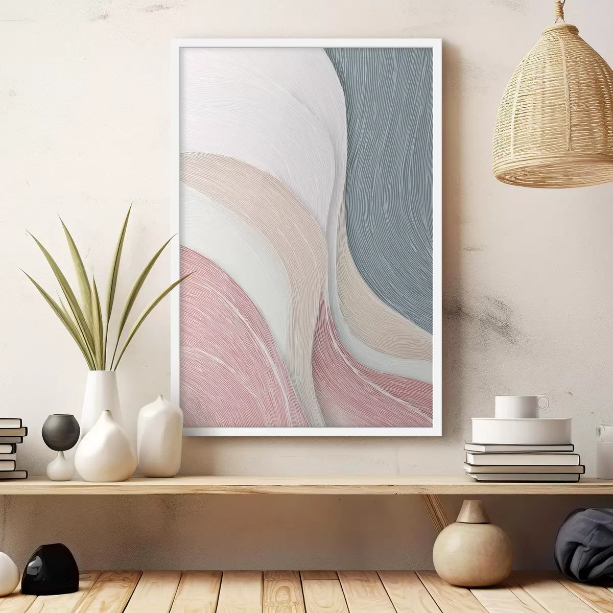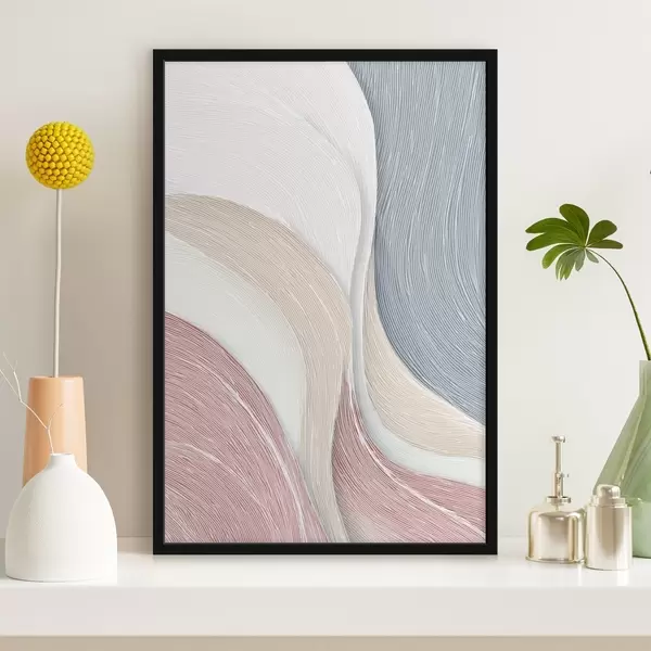 Poster Légères vagues abstraites dans des tons rose pâle et gris-blanc Nr f46153
