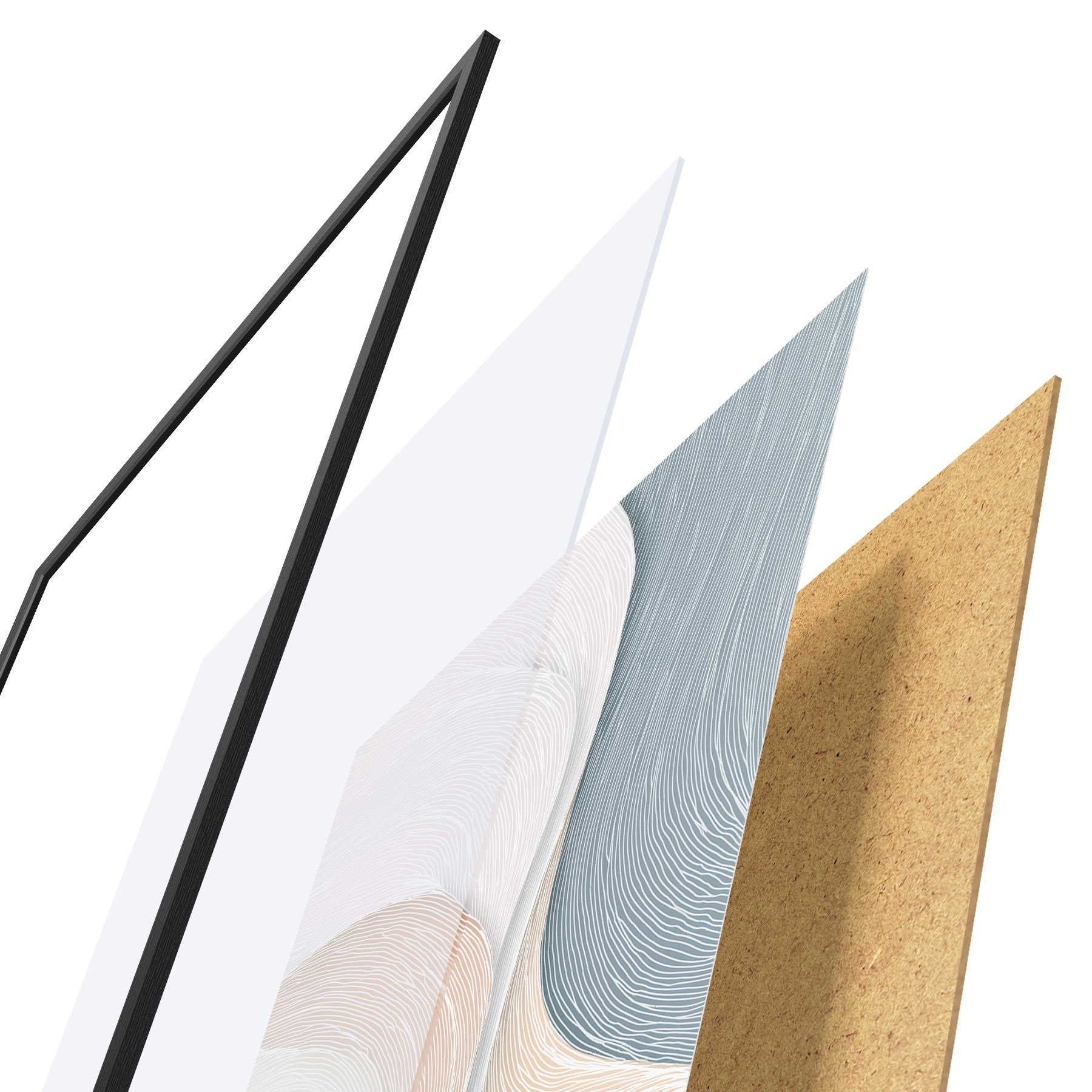 L’affiche encadrée est composée d’un cadre, d’un plexiglas, d’une image imprimée et d’un support en aggloméré. Elle est prête à être accrochée au mur grâce aux fixations situées à l’arrière.
