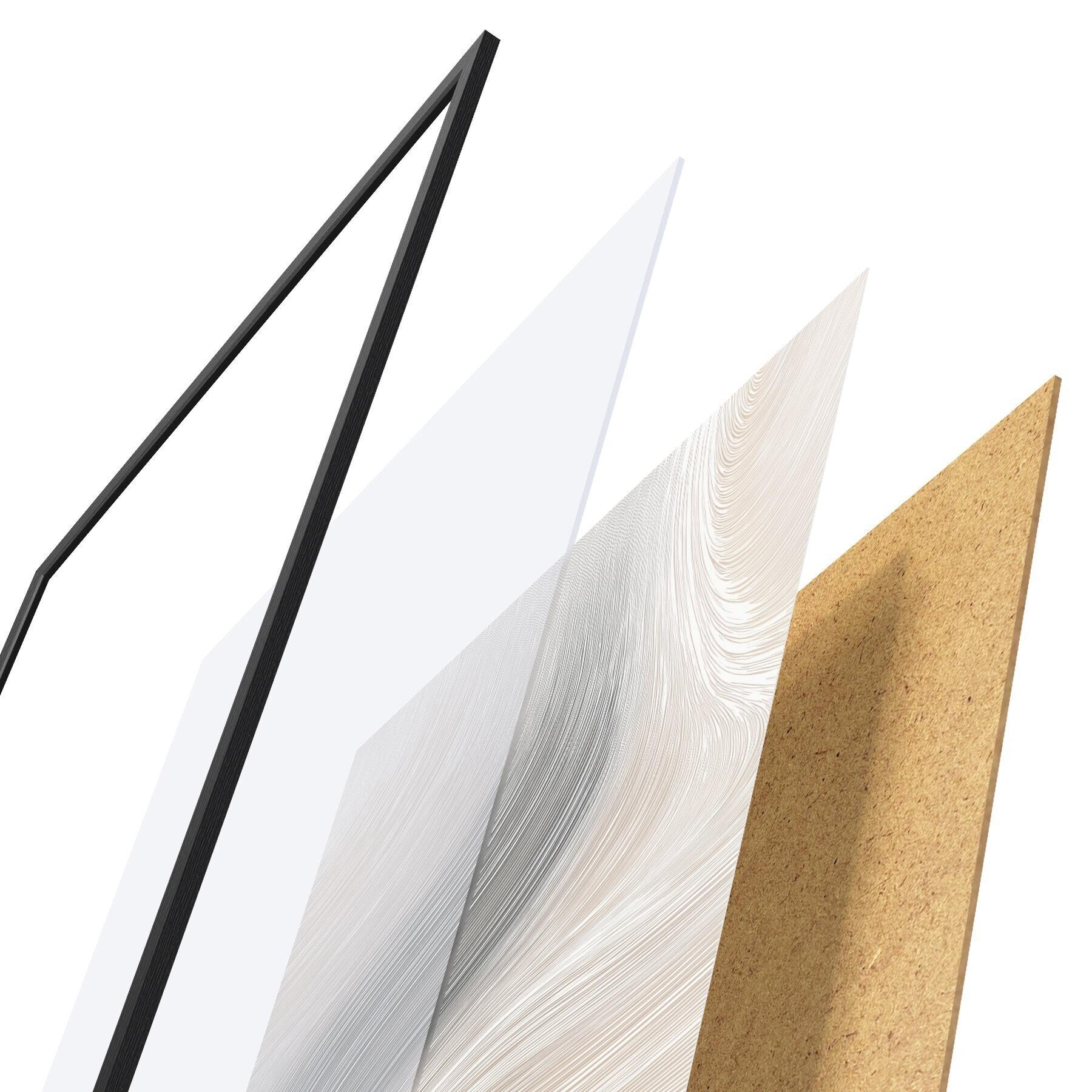L’affiche encadrée est composée d’un cadre, d’un plexiglas, d’une image imprimée et d’un support en aggloméré. Elle est prête à être accrochée au mur grâce aux fixations situées à l’arrière.