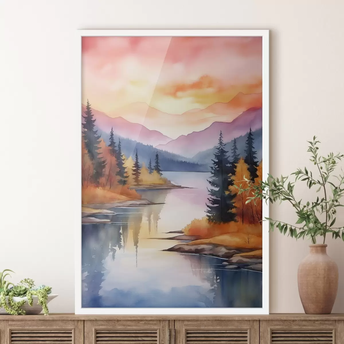 Poster Paysage automnal au bord du lac avec un ciel lumineux Nr f46155
