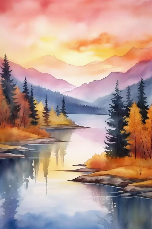 Poster Paysage automnal au bord du lac avec un ciel lumineux f46155