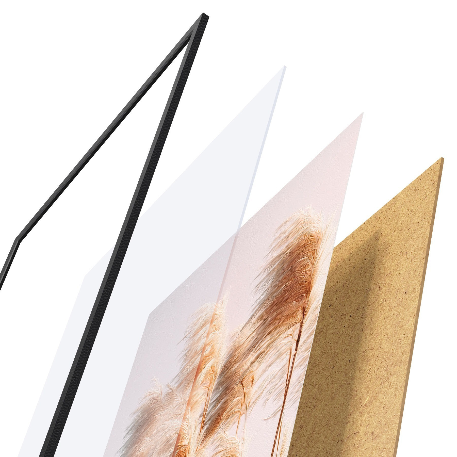 L’affiche encadrée est composée d’un cadre, d’un plexiglas, d’une image imprimée et d’un support en aggloméré. Elle est prête à être accrochée au mur grâce aux fixations situées à l’arrière.