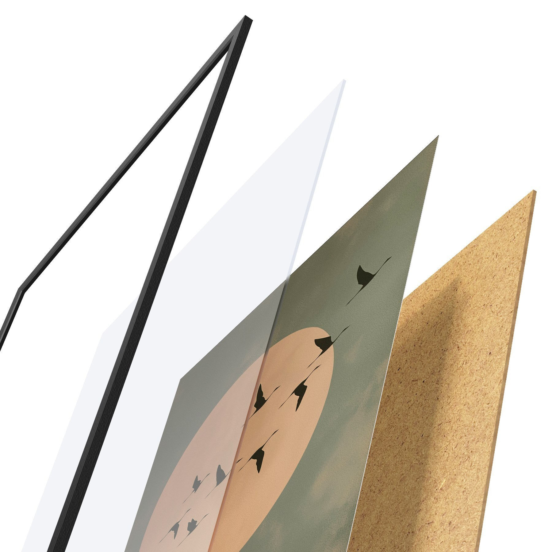 L’affiche encadrée est composée d’un cadre, d’un plexiglas, d’une image imprimée et d’un support en aggloméré. Elle est prête à être accrochée au mur grâce aux fixations situées à l’arrière.