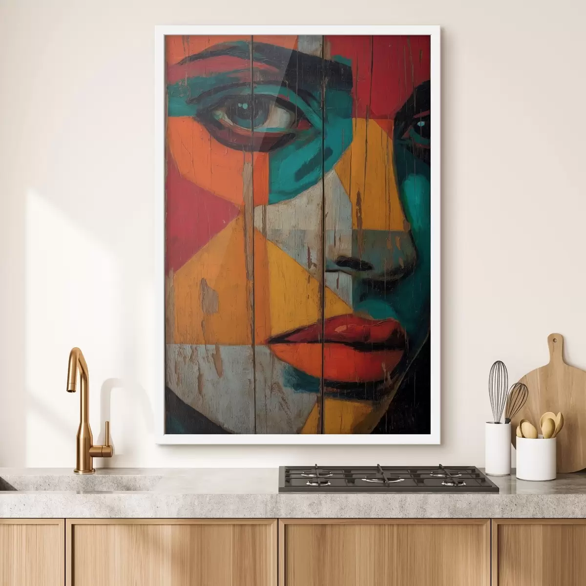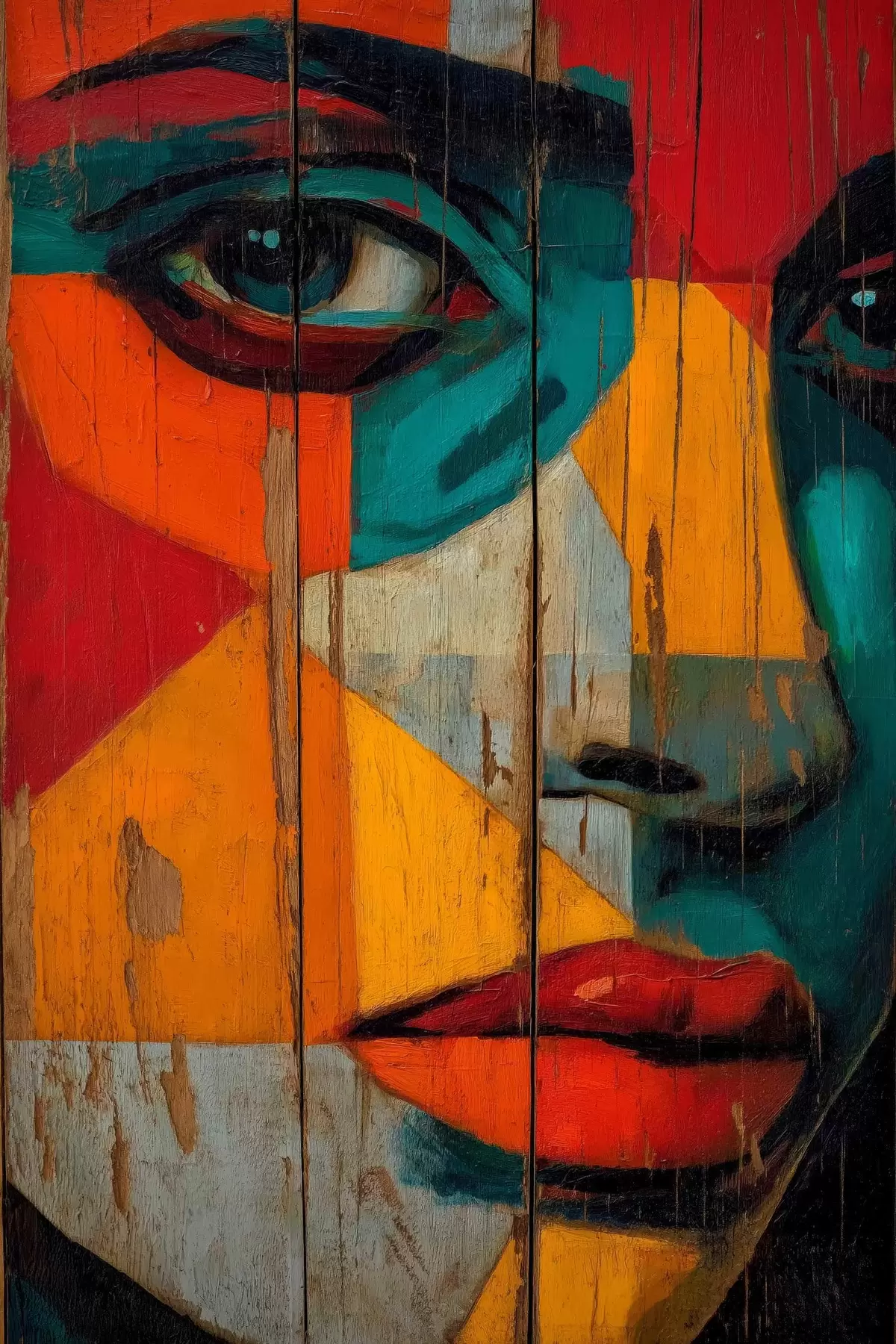 Poster Portrait géométrique lumineux sur panneaux de bois Nr f46165