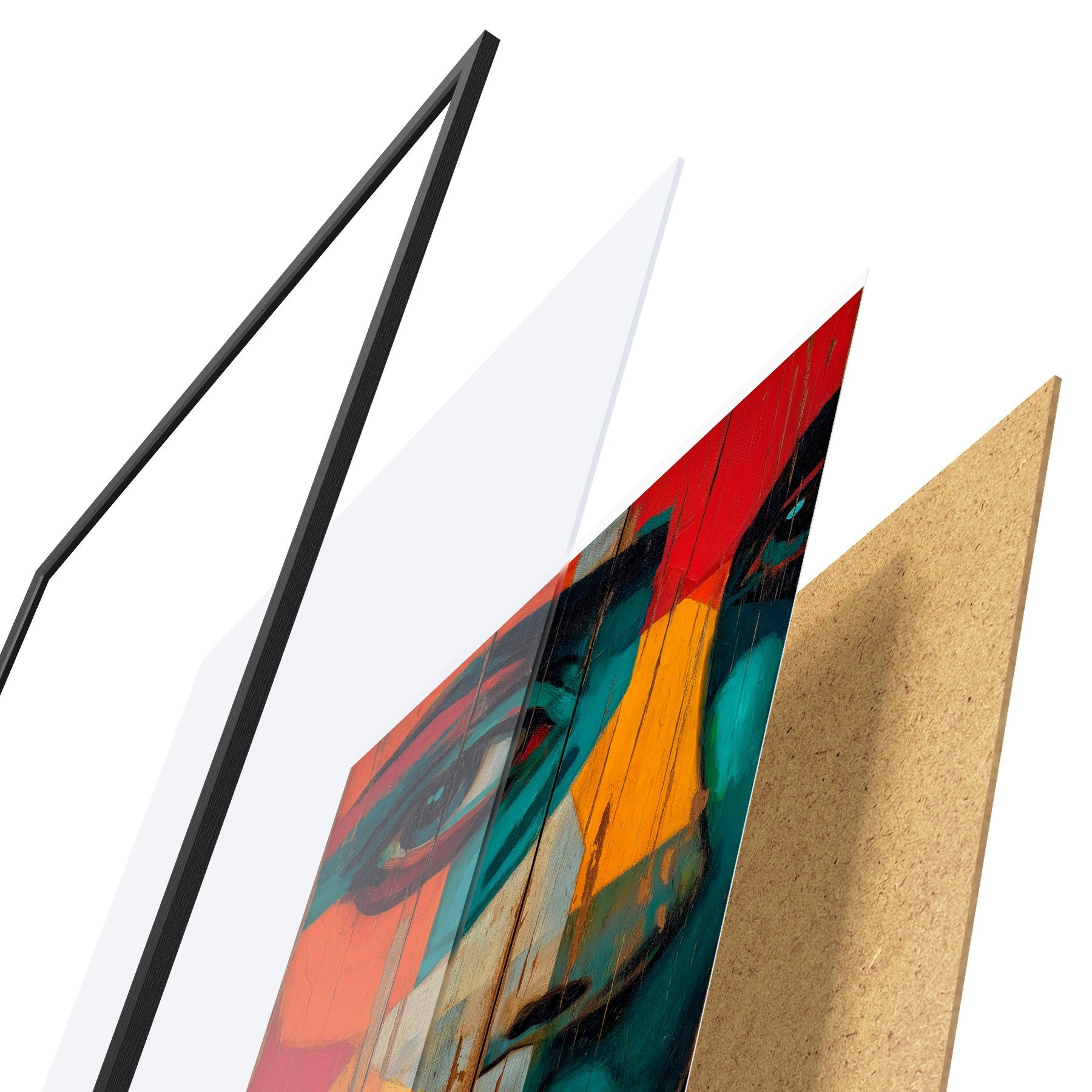 Poster Portrait géométrique lumineux sur panneaux de bois f46165